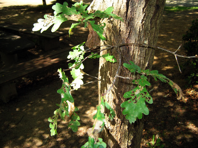 先週の土曜日に2025年1月15日の記事に書いたイングリッシュオークの様子を見てきました。まだ厳しい暑さが続いていますが、9月も終わりに近いづいてきたので落ちてはいないものの青いドングリが出来ているのではないかと期待を寄せていたのですが・・・。